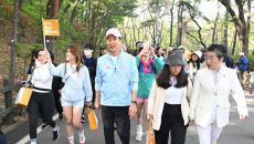 [서울=뉴스핌] 양윤모 기자 =오세훈 서울시장이 24일 오후 '서울 등산관광센터 관악산점 개관식' 행사를 찾은 시민들과 함께- 2025-04-24 20:26