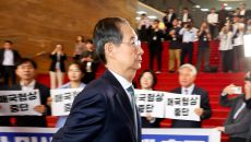 야4당 피켓시위 속 입장하는 한덕수 권한대행