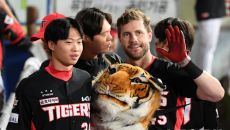 24일 대구 라이온즈파크에서 열린 삼성 라이온즈와 KIA 타이거즈의 경기. 6회초 KIA 위즈덤이 솔로포를 날린 뒤 환호하고- 2025-04-24 20:24