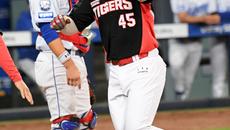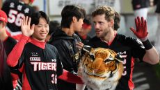 24일 대구 라이온즈파크에서 열린 삼성 라이온즈와 KIA 타이거즈의 경기. 6회초 KIA 위즈덤이 솔로포를 날린 뒤 환호하고- 2025-04-24 20:23