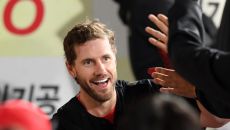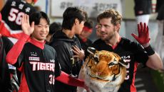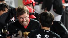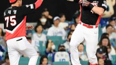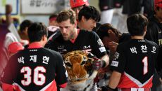 [포토] 위즈덤 '박재현에게 홈런 기운'