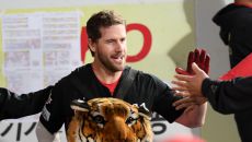 24일 대구 라이온즈파크에서 열린 삼성 라이온즈와 KIA 타이거즈의 경기. 6회초 KIA 위즈덤이 솔로포를 날린 뒤 환호하고- 2025-04-24 20:24