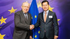 ▲ 석종건 방사청장(우)이 23일(현지시간) 벨기에 브뤼셀에서 안드리우스 쿠빌리우스 EU 방위·우주담당 집행위원과 회동하고 있- 2025-04-24 10:15