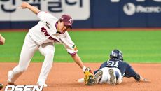 [사진]정수빈 도루 저지한 어준서