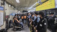 전장연, 혜화역 승강장 시위…사흘 연속 강제퇴거