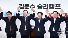 지지 선언 의원들과 손 맞잡은 김문수 후보