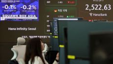 24일 한국경제가 3분기만에 마이너스 성장을 기록한 보도가 나오자 코스피 지수가 마이너스로 전환되고 있다. 서울 중구 하나은행- 2025-04-24 09:28
