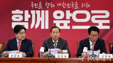 아시아투데이 송의주 기자 = 권영세 국민의힘 비상대책위원장(오른쪽에서 두번째)이 24일 국회에서 열린 비상대책위원회의에서 발언- 2025-04-24 09:26