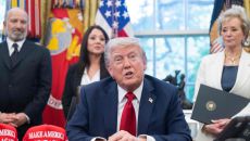 (워싱턴 AFP=뉴스1) 우동명 기자 = 도널드 트럼프 미국 대통령이 23일(현지시간) 워싱턴 백악관에서 열린 행정명령 서명식- 2025-04-24 08:39