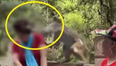 원숭이 약 올리다 가발 ‘훌러덩’…탈모 여성의 굴욕 (영상)