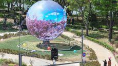 23일 서울 송파구 석촌호수에 설치된 미디어아트 조각품 ‘더 스피어(The Sphere)’가 대중에 공개됐다. 지름 7m 규모- 2025-04-24 00:10