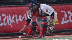 [사진] 박세웅 폭투 잡으러 달려가는 유강남