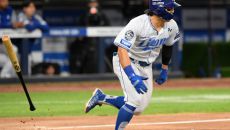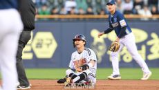 24일 대구 라이온즈파크에서 열린 삼성 라이온즈와 KIA 타이거즈의 경기. 4회말 무사 1루 삼성 김성윤이 안타를 날리고 있다- 2025-04-24 19:35