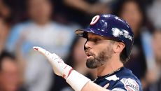 24일 오후 고척스카이돔에서 2025 프로야구 두산 베어스와 키움 히어로즈의 경기가 벌어졌다. 3회 초 무사에서 두산 케이브가- 2025-04-24 19:22