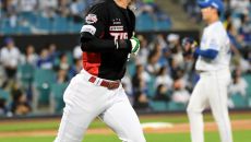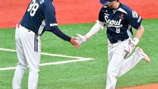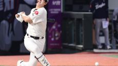 [포토] 나승엽 '내가 친 타구에 내가 맞다니...'