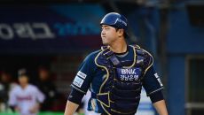 김형준 '도루 저지에 뿌듯한 미소'[포토]