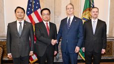 ▲ (왼쪽부터) 안 산업부 장관, 최 부총리, 스콧 베센트 미 재무장관, 제이미슨 그리어 미국무역대표부(USTR) 대표 한·미- 2025-04-24 23:00