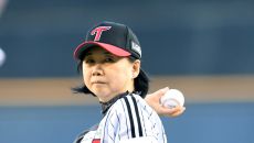 지영미 질병관리청장이 24일 잠실구장에서 열린 2025 KBO리그 NC와 LG의 경기에 앞서 시구를 하고 있다. 2025. 4- 2025-04-24 19:05