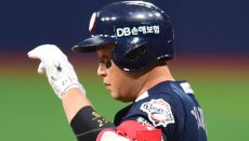 24일 오후 고척스카이돔에서 2025 프로야구 두산 베어스와 키움 히어로즈의 경기가 벌어졌다. 1회 초 2사 1루에서 두산 양- 2025-04-24 19:01