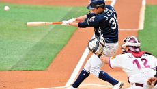24일 부산 사직야구장에서 열린 롯데와 한화의 경기. 2회 1사 만루 파울 타구를 치고 아쉬워하는 한화 최재훈. 부산=송정헌- 2025-04-24 18:58