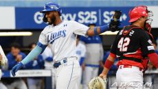 24일 대구 라이온즈파크에서 열린 삼성 라이온즈와 KIA 타이거즈의 경기. 1회말 2사 1루 삼성 디아즈가 투런포를 날린 뒤- 2025-04-24 18:58