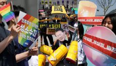 제21대 대통령선거를 40일 앞둔 24일 오전 서울 종로구 광화문광장 일대에서 각계각층의 시민들이 대통령 후보들을 향한 요구안- 2025-04-24 18:11