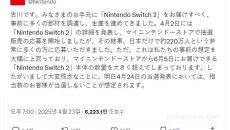 닌텐도가 스위치 2 일본 마이 닌텐도 스토어 사전 판매 응모 참여자 수를 공개하며, 참가자 수가 예상치를 크게 웃돌아 수요에- 2025-04-24 17:16