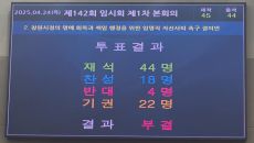[창원=뉴시스]강경국 기자 = 경남 창원시의회가 24일 열린 제142회 임시회 1차 본회의에 상정한 창원시정의 명예회복과 책임- 2025-04-24 17:03