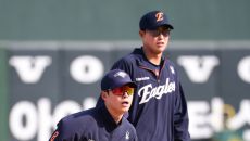 24일 부산 사직야구장에서 열리는 롯데와 한화의 경기. 수비 훈련을 하고 있는 노시환. 부산=송정헌 기자songs@sports- 2025-04-24 17:02