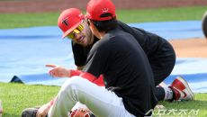 24일 대구 라이온즈파크에서 열린 삼성 라이온즈와 KIA 타이거즈의 경기. KIA 위즈덤이 훈련을 하고 있다. 대구=박재만 기- 2025-04-24 16:44