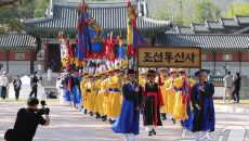 (서울=뉴스1) 신웅수 기자 = 24일 오후 서울 종로구 경희궁에서 조선통신사 행렬 재현 행사가 열리고 있다. 이번 행사는 한- 2025-04-24 16:44