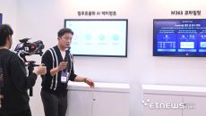 WIS 2025 KT 부스에서 방송인 김대호가 KT AI 서비스에 대한 콘텐츠를 촬영하고 있다. 박지호기자 jihopress@- 2025-04-24 16:38