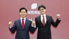 국민의힘 대선 2차 경선 진출자인 김문수(왼쪽)·한동훈 후보가 24일 오후 서울 종로구 동아미디어센터 채널A 오픈스튜디오에서- 2025-04-24 16:33