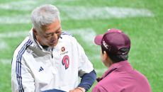 고토 수석코치 '김창현 수석코치와 인사'[포토]