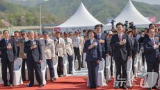 (서울=뉴스1) = 강정애 국가보훈부 장관이 24일 경기도 연천군 국립연천현충원 예정 부지에서 열린 국립연천현충원 조성사업 착- 2025-04-24 16:25