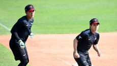 24일 잠실야구장에서 열린 NC와 LG의 경기, LG 최원영과 이영빈이 주루훈련을 하고 있다. 잠실=허상욱 기자wook@spo- 2025-04-24 16:04