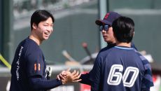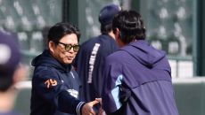 [포토] 양상문 코치 '반가운 친정 식구들과 인사'