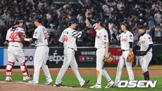 [사진] 롯데 선수들, 한화 9연승 저지 기쁨의 하이파이브