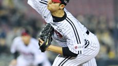 LG 김영우가 24일 잠실구장에서 열린 2025 KBO리그 NC와의 경기 9회초 등판해 힘차게 공을 던지고 있다. 2025.- 2025-04-24 21:34