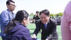 (광주=뉴스1) 박준배 기자 = 강기정 광주시장이 24일 오전 북구 첨단체육공원 축구장에서 열린 '근로장애인과 함께하는 어울림- 2025-04-24 15:21