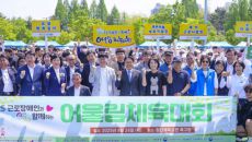 강기정 광주시장이 24일 오전 북구 첨단체육공원 축구장에서 열린 '근로 장애인과 함께하는 어울림 체육대회'에서 참석자들과 기념- 2025-04-24 15:15