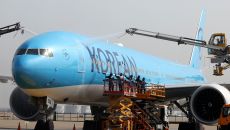 24일 인천 중구 인천국제공항 대한항공 격납고에서 직원들이 봄을 맞아 항공기 동체를 세척하고 있다. 이날 세척한 항공기는 보잉- 2025-04-24 21:25