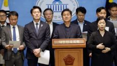 더불어민주당 전정권정치탄압대책위원회 위원들이 24일 국회 소통관에서 문재인 전 대통령 기소 관련 긴급 기자회견을 하고 있다.- 2025-04-24 15:02