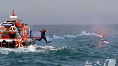 (부산=뉴스1) 윤일지 기자 = 24일 오후 부산 강서구 진우도 남방 해상에서 항공기 해상 불시착 합동 구조 훈련이 진행되고- 2025-04-24 15:02