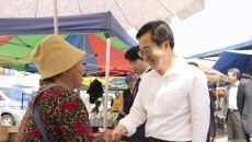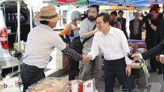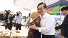 황룡시장 찾아 상인과 포옹하는 김동연 후보