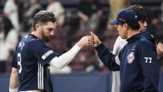 [포토] 콜어빈, 이승엽 감독과 승리 자축