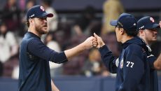24일 서울 고척스카이돔에서 열린 두산-키움전. 두산이 9대3으로 승리했다. 이승엽 감독이 콜어빈과 주먹을 맞대고 있다. 고척- 2025-04-24 21:18