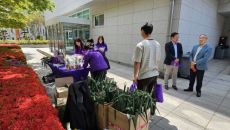 아시아투데이 이명남 기자 = 전남 신안군 고향사랑팀 직원들이 24일 오전 전남 무안군 삼향읍에 소재한 전남교육청에서 직원들에게- 2025-04-24 14:39