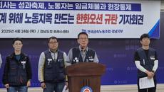 (창원·거제=연합뉴스) 정종호 기자 = 금속노조 경남지부와 거제통영고성조선하청지회(이하 노조) 등 지역 노동계는 24일 한화오- 2025-04-24 14:39