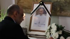 주한 교황청 대사관에서 추모의 글 남기는 외교관